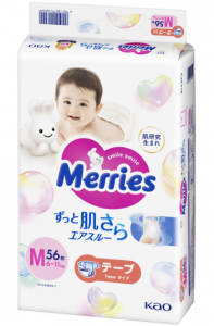 Японські підгузки Merries є розробкою найкращих фахівців міжнародної корпорації КАО. У дослідженнях на якість та безпеку брали участь і звичайні японські мами та тати. Памперси на «відмінно» справляються із збереженням сухості шкіри малюка та захисту від протікань, навіть коли виріб вже переповнений, всередині вони м'які як шовк, тому не викликають подразнень, а анатомічна форма дарує малюкам абсолютну свободу рухів.