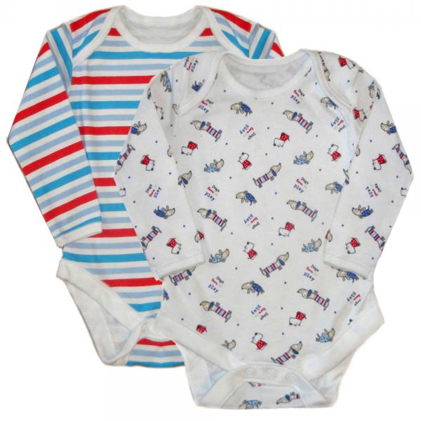 Dunnes Stores (Англія) Боді з довгим рукавом Собачки та смужки (0-3, 3-6, 6-12, 18-23 міс. та 2-3 роки) 2шт