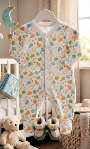 Зручність: Застібка на кнопках по всій довжині комбінезона забезпечує легке та швидке переодягання, навіть коли малюк спить.