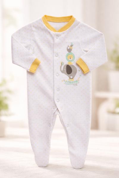 Подаруйте малюку справжнє свято затишку! Цей ніжно-білий сліп із сонячними жовтими деталями та кумедним принтом «Circus Fun» неодмінно стане улюбленою річчю у гардеробі.