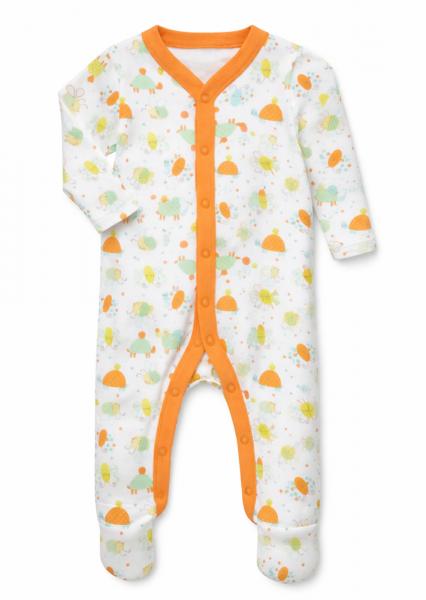 Яскравий дизайн: Ніжний білий колір з контрастною помаранчевою окантовкою та милим принтом у вигляді пчілок, сонечок та квіточок.