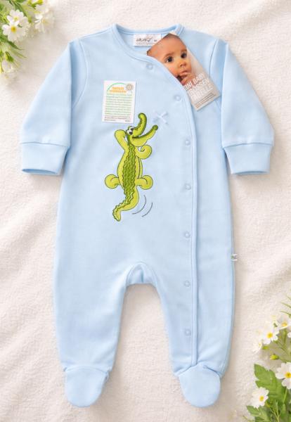 Дитячий чоловічок (сліп) блакитний з вишивкою крокодила