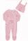 До набору входить чоловічок (сліп) та шапочка. Склад тканини — 100% бавовна преміум якості. Колір — рожевий меланж. Завдяки високій якості друку та тканини, виріб зберігає колір і форму після багатьох циклів прання.