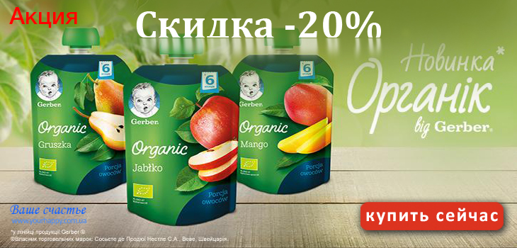 Скидка 20% на фруктовые пюре Gerber Organic!