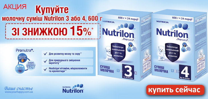Скидка 15% на молочные смеси Nutrilon 3 и 4 весом 600грамм!