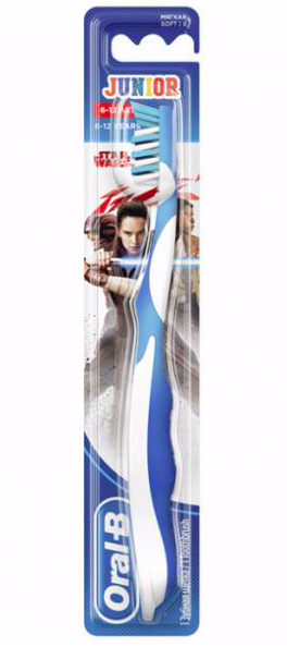 Дитяча зубна щітка Oral-B (Орал-Бі) Junior Star Wars дуже м'яка та зручна. Вона м'яко і ретельно очистить зуби вашої дитини, при цьому піклуючись про ніжні дитячі ясна.