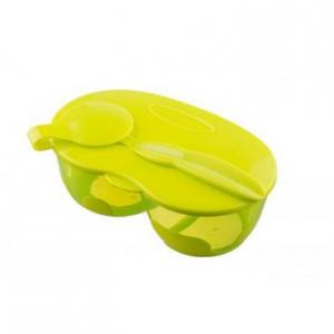 Компания Nuby, например, предлагает замечательные тарелочки разной формы (глубокие, плоские), для сухих завтраков с крышкой, на присосках, с нескользящим дном, с подогревом и т.д. Родители могут собрать уникальный наборчик для своего ребеночка или купить уже готовый набор Нуби. В магазине «Yourhappy» есть недорогие наборы самих тарелочек, а есть целый комплект посуды Garden Fresh Mash'n Feed для приготовления и кормления, состоящие из:
