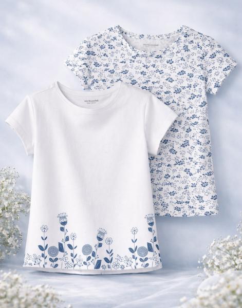 Стильний та комфортний комплект футболок для дівчинки, який ідеально підходить для щоденного носіння. Лаконічний дизайн із ніжними квітковими мотивами створює легкий, свіжий та сучасний образ.